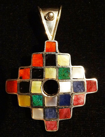 Andean Cross – Chakana – It is inspired by the Constellation of the Southern Cross, which orients all creation on the Southern Hemisphere, as it is above and shall be below. On a small scale, it is the symbol of the Pachamama or Mother Earth, and on a larger scale, it is the symbol of the Universe. The four arms represent the four cardinal points (north, south, east and west). The circle represents eternity. The square represents the four natural elements (air, water, earth, fire). The triangle represents the three worlds in harmony: Hanan Pacha – spiritual world; Kay Pacha – physical world; and Uju Pacha – mental or psychological world. The small circle in the center of the triangle represents the point of harmony or equilibrium. All these elements together mean that to feel happiness in all senses human beings need to harmonize their three worlds or bodies using the four natural elements, with wisdom. Thus we will reach eternity, guided by the Southern Cross or Square Cross.